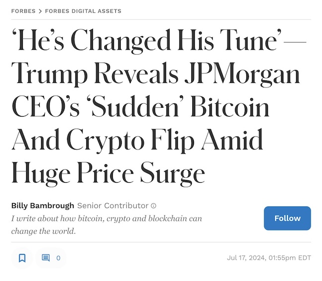 You think Dimon flipped and doesn’t own any? Dips are for buying in the bull market folks.