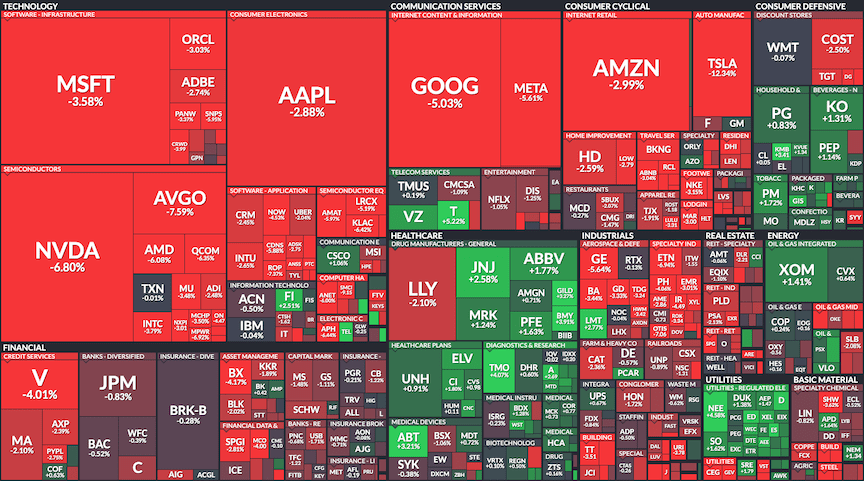 After showing signs of wobbling the last few weeks, US markets slumped on 24 July with big tech shares leading the move down. Tesla Inc (TSLA) fell -12.3% after a Q2 earnings miss while Alphabet Inc (GOOGL) dropped -5% despite beating earnings expectations. That was enough to trigger an avalanche and the NASDAQ ended -3.6% lower and the S&P 500 endured its worst day since 15 December 2022, falling -2.2%.
