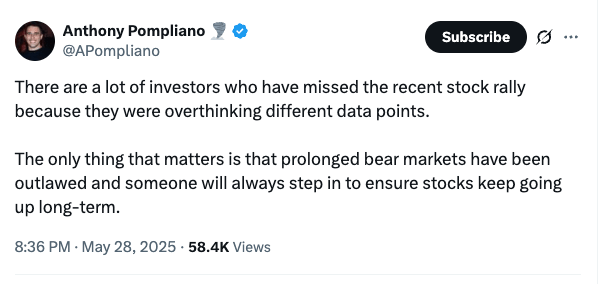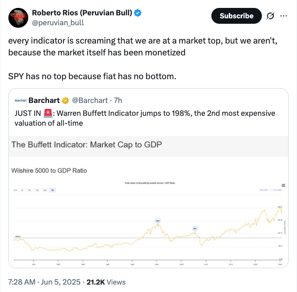 You may have noticed a theme in my last two posts: markets have no top, because fiat has no bottom. If fiat money is programmed for debasement, then assets priced in fiat are equally programmed to increase in value over time.
